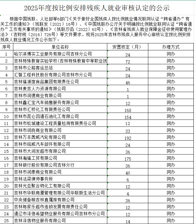 2025按比例安排残疾人就业年审公示