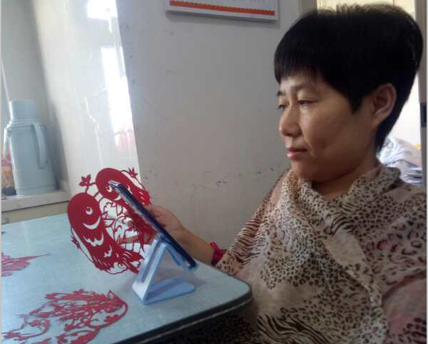 图为残疾人通过网络学习创作的剪纸作品