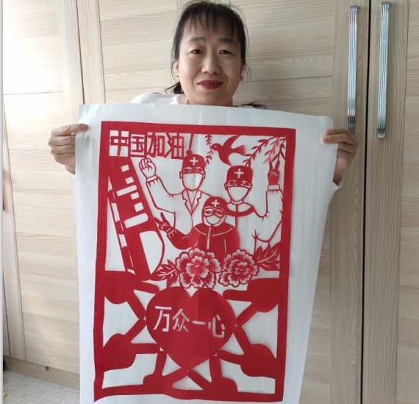 每天上午九点开始由残友潘玉春和杜艳华组织大家学习吉林省残疾人康复中心发的《2020吉林省新型冠状病毒感染防护手册》,详细讲解此次冠状病毒的来历、感染源及防护和治疗方法,使残疾人朋友更清晰地掌握防范知识,提高防控意识,减少感染率。每天上午九点半由著名书画家单立秋老师在群里发视频和语音教大家书法课,让大家了解中国传统毛笔字的写法及书法知识。正月初五书法课一开课,群里残友们争相学习,每天都有近40名残友积极上交作业,老师逐个点评,解答书法练习时遇到的问题。残友周丽红每天认真练习书法,桌面有厚厚的写满字的纸,老师对这种认真学习的态度给予了表扬。课间休息,张凤秋等文艺活动积极分子会给大家演示轮椅广播体操,优美的体操动作,既让大家锻炼了身体,又增添了大家的学习兴趣。上午十一点至十二点是著名剪纸艺术家华丽老师的剪纸课,剪“福”字、生肖鼠的图案、金鱼、春字,蝴蝶等。因为特殊时期很多残友都没有事先准备太多材料,但大家也能用现有的纸张认真练习。残友尚国茹还创作了抗疫主题作品《隔空拥抱》,画面是在发热门诊外,孩子由父亲陪同看望做医生的妈妈,与妈妈隔空拥抱。反应了医护工作者的辛苦工作和奉献精神。每天下午一点,网络达人笑笑老师教大家快手直播创业课程。在老师的指导下很多残友在快手里学习开设直播间,用自己的方式向大家展示自己的才华或疫情过后进行创业平台销售。残友桑凤格在快手里教大家编织,刘莉主席教残友们学英语,潘玉春教大家学习网络快手销售。每天晚上,残友廉达会把白天老师的讲课视频,做聊天包发到群里,让大家保存起来方便以后的复习。大家都称赞他是特殊时期的正能量。残友樊耀文,杜艳华和倪周童创作的诗歌,在省作家协会刊物中发表,其中樊耀文老师的致敬最美逆行者还在群中进行了朗读。大家共同期盼着疫情结束后,协会将组织一次大型的“疫情期间正能量作品展”。