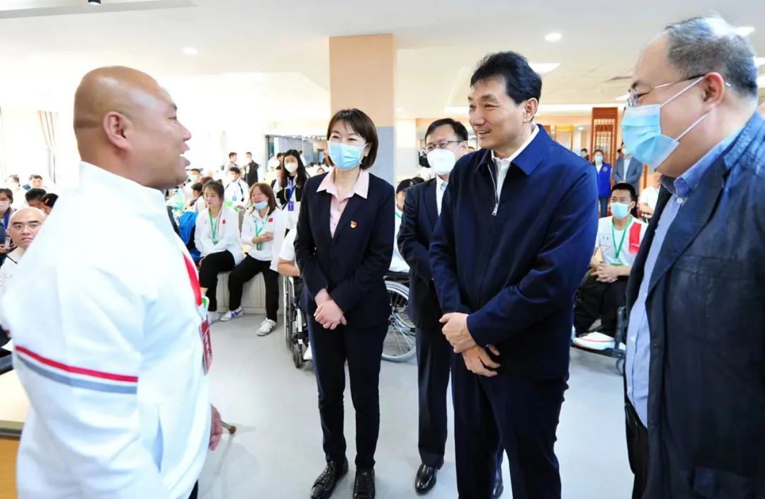 5月19日上午,省政府副省长梁仁哲、省政府副秘书长苏衡来到省残疾人中职学校,代表省政府看望在这里参加助残日活动的残疾人及亲友代表,对残疾人工作者表示亲切慰问。